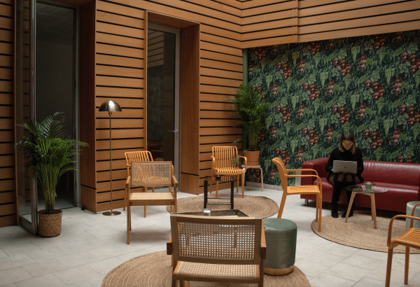 Associé à du mobilier pro pour être hyper fonctionnel et répondre aux exigences des co-workers.
